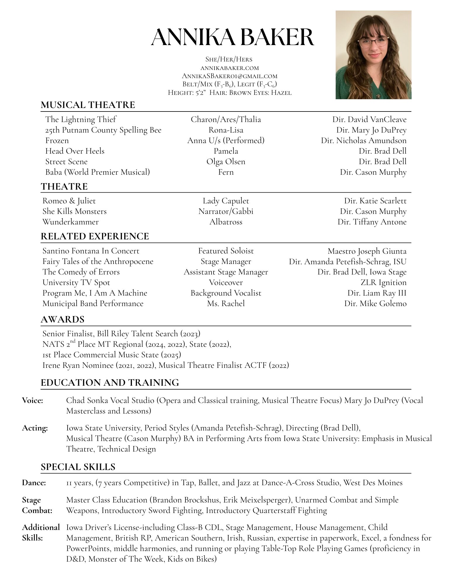 Annika Baker Performance Resume